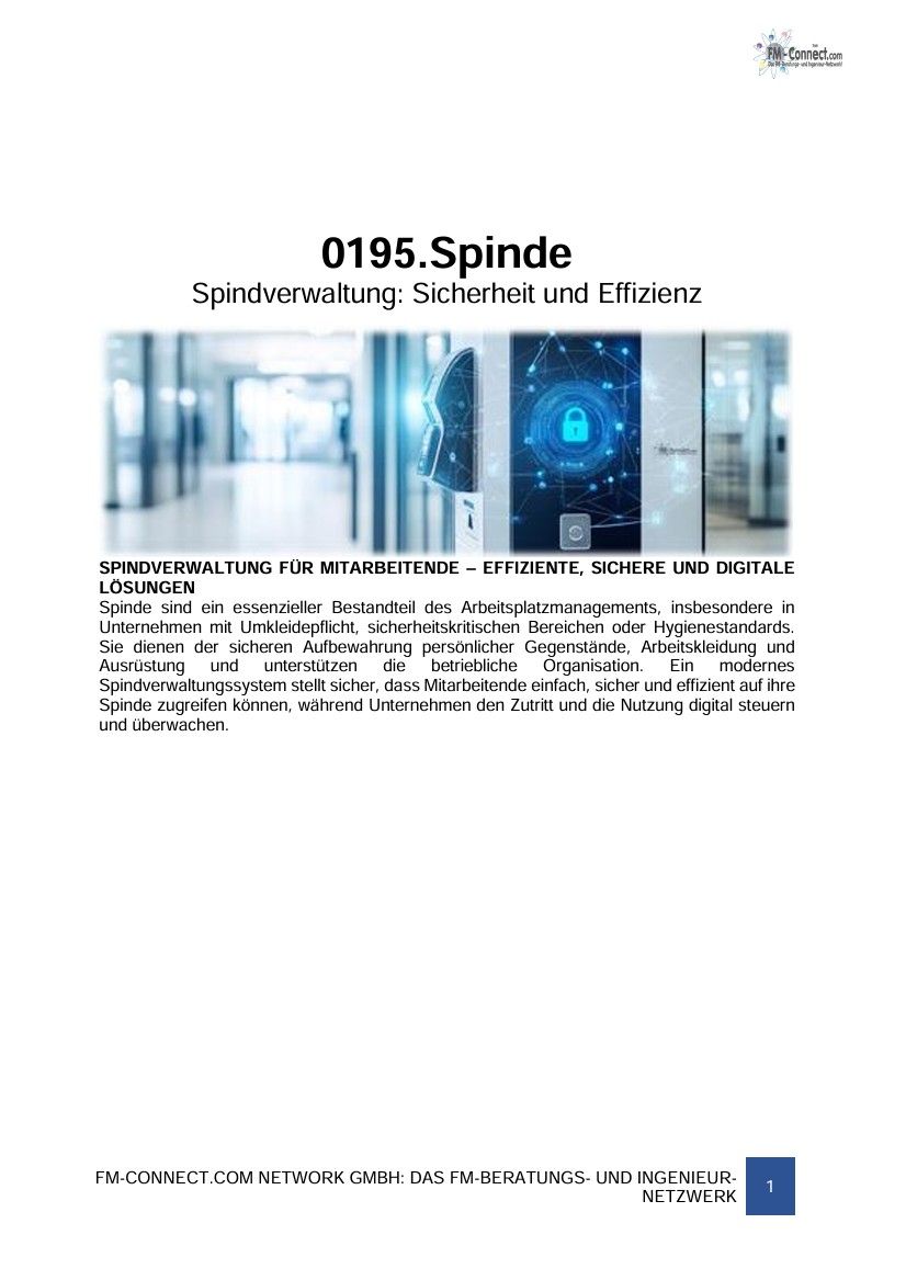 Das Anwendungsdokument „Spinde” beschreibt ein modernes System zur Verwaltung und Nutzung von Spinden für Mitarbeitende unter Gesichtspunkten von Sicherheit, Effizienz und Digitalisierung. Jeder Mitarbeitende erhält einen festen Spind, der über RFID-Zutrittskarten, PIN oder Smartphone-App geöffnet wird; für flexible Arbeitsplätze kann temporäre Nutzung eingerichtet werden. Die Verwaltung erfolgt digital, mit Schnittstellen zu Zutrittskontroll- und HR-Systemen, Echtzeitüberwachung von Belegung und automatischen Sperrung bei unbefugtem Zugriff oder bei Verlassen des Unternehmens. Notfallöffnungen sind vorgesehen, z. B. bei Evakuierungen. Alle Nutzungsdaten werden DSGVO-konform protokolliert und nach definierten Fristen gelöscht. Ziel ist, den Verwaltungsaufwand zu reduzieren, die Sicherheit bei der Aufbewahrung persönlicher Gegenstände zu erhöhen und organisatorische Transparenz und Nutzerfreundlichkeit zu schaffen.