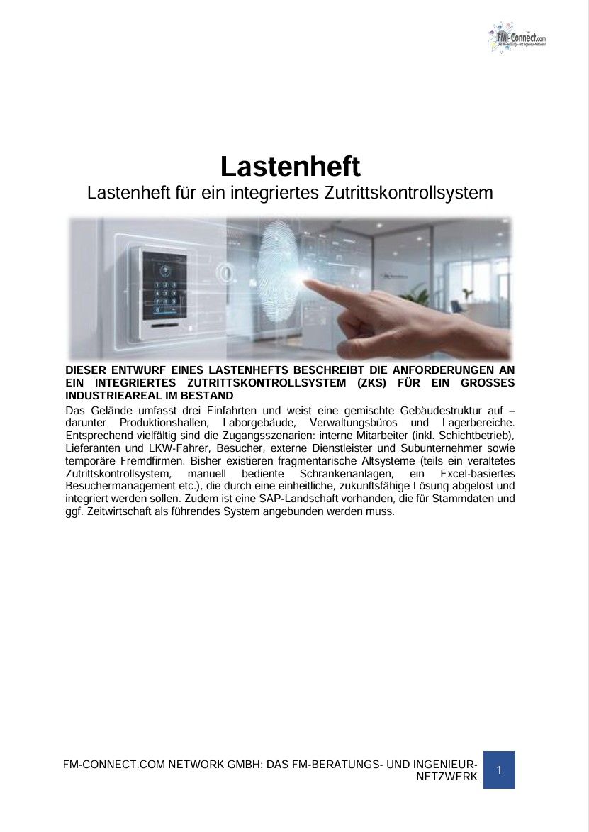 Lastenheft für ein integriertes Zutrittskontrollsystem