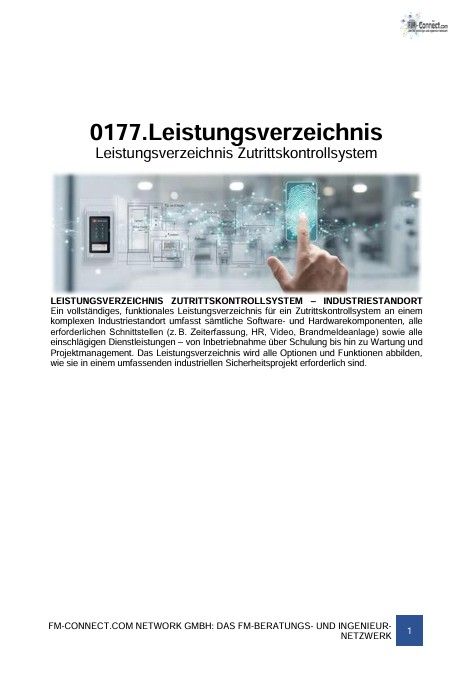 Das Anwendungsdokument „Leistungsverzeichnis Zutrittskontrollsystem – Industriestandort“ definiert detailliert die Anforderungen an ein modernes Zutrittskontrollsystem für komplexe industrielle Standorte. Es umfasst Hardware, Software, Integrationen zu Zeiterfassung, HR, Videoüberwachung und Brandmeldeanlagen sowie Dienstleistungen wie Inbetriebnahme, Schulung, Wartung und Projektmanagement. Beschriebene Kernfunktionen sind Multi-Mandantenfähigkeit, umfassendes Logging, Reporting-Tools, Alarmbenachrichtigungen sowie flexible Authentifizierungsverfahren wie Ausweise, Mobile Credentials, PIN und Biometrie. Darüber hinaus wird ein flexibler Betrieb über On-Premise- oder Cloud-Lösungen mit identischem Funktionsumfang ermöglicht. Die Benutzeroberfläche ist intuitiv gestaltet und mit klaren Rollen- und Rechtekonzepten sowie zentraler Lizenzierung ausgestattet. Damit bietet das Dokument eine präzise Grundlage für Ausschreibung, Implementierung und nachhaltiges Management von Zutrittskontrollsystemen im industriellen