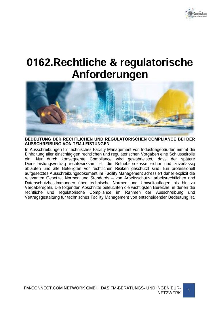 Das Anwendungsdokument „Rechtliche & regulatorische Anforderungen“ im TFM-Umfeld beleuchtet alle relevanten Rechtsvorschriften, Normen und behördlichen Vorgaben, die technisches Facility Management betreffen. Es behandelt unter anderem Betriebs- und Genehmigungsvorschriften, Sicherheits- und Arbeitsschutzgesetze, Emissions- und Umweltauflagen, Brandschutzrichtlinien, Datenschutz- und Gebäudeenergiegesetzgebungen sowie Gewährleistungs- und Haftungsaspekte. Ferner erläutert es, wie Betreiber Nachweise, Zertifizierungen und regelmäßige Kontrollen einrichten müssen, um die Compliance sicherzustellen. Das Dokument zeigt, wie durch strukturierte rechtliche Kontrolle Risiken reduziert, Genehmigungsprozesse beschleunigt und regulatorische Konflikte frühzeitig adressiert werden können. Ziel ist es, TFM-Verantwortliche in die Lage zu versetzen, ihre Technik- und Dienstleistungsprozesse rechtskonform und nachhaltig zu betreiben.